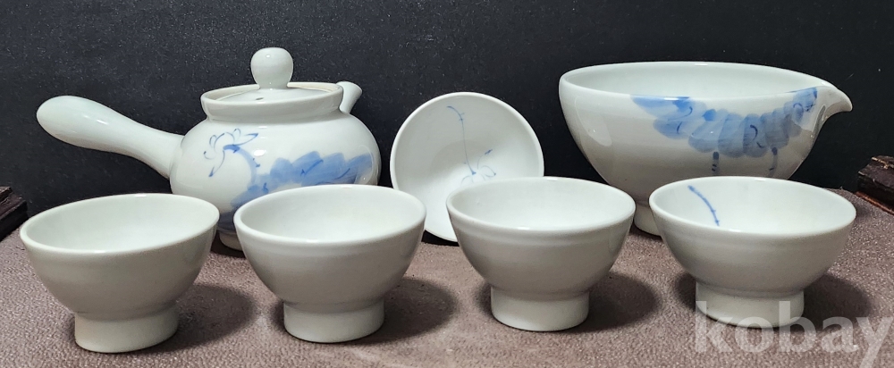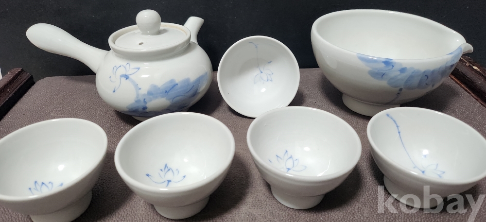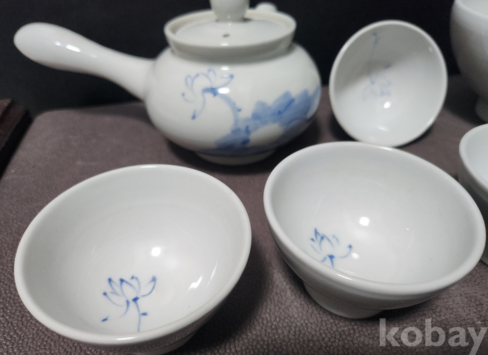 "남촌도예" 서무성 도예가의 백자청화연화문다기 白磁靑華 蓮花文茶器 < 도예가 수결 작품 >