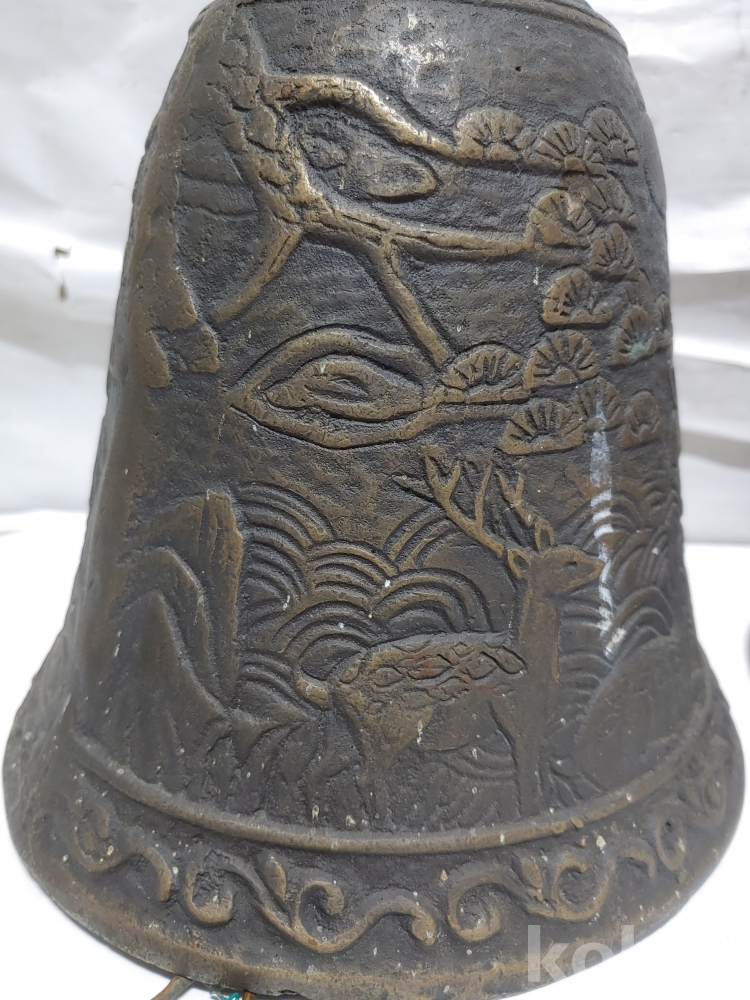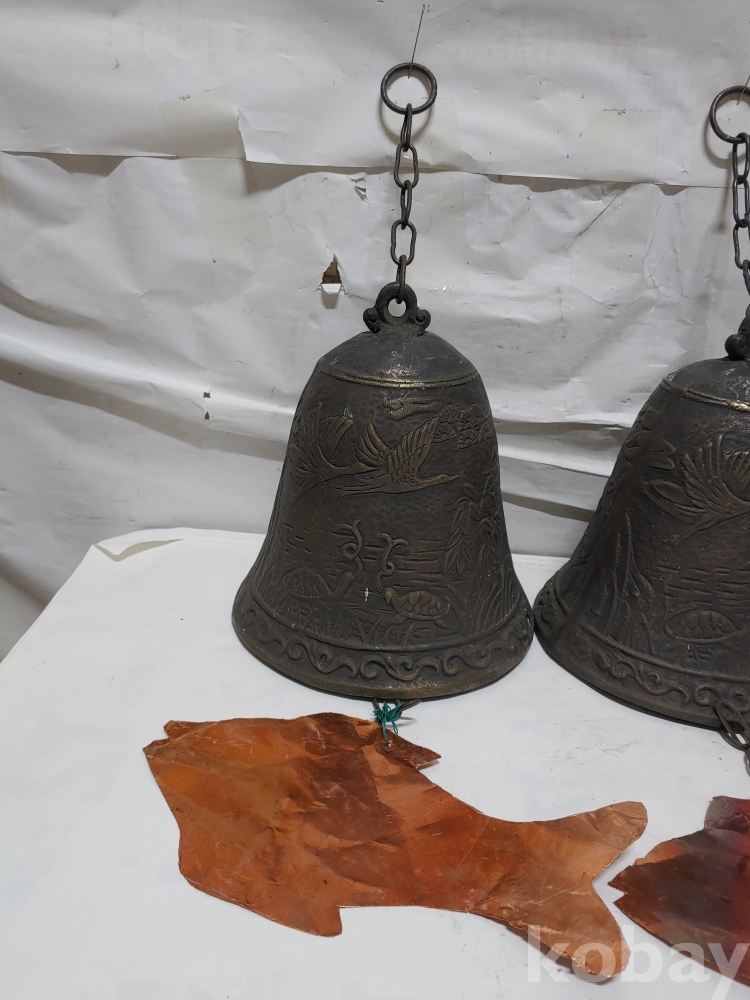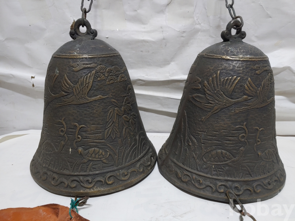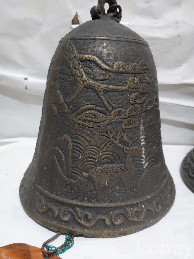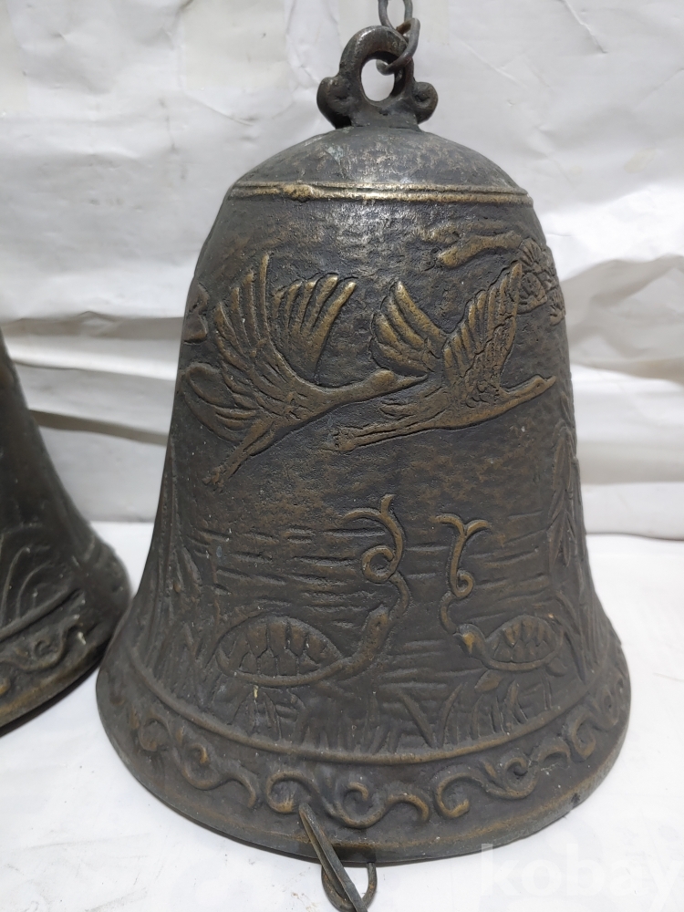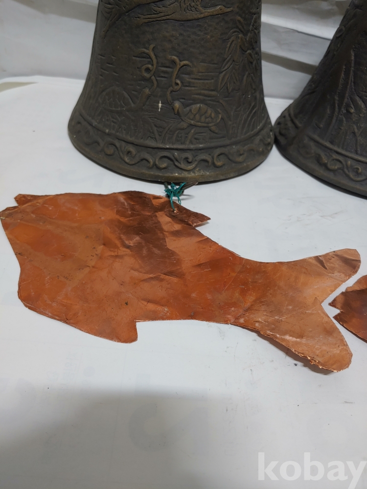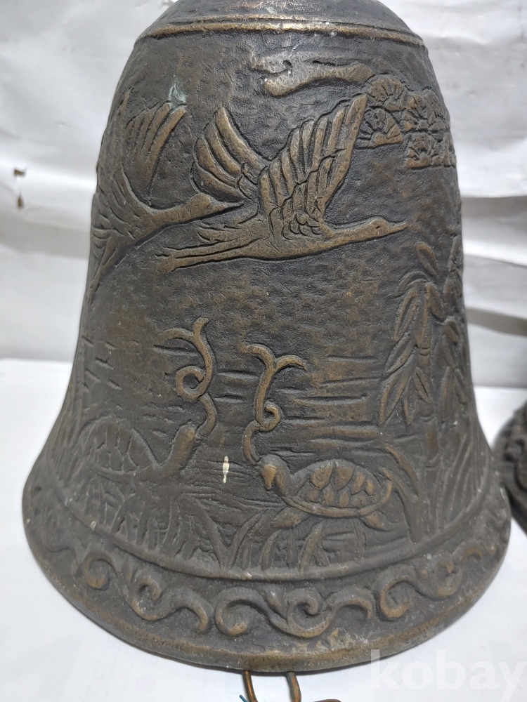 ""송학 사슴 거북이 등등 십장생 문양에 두툼한 초대형 크기에 놋쇠 핑경 한세트 (2개)"" 1번