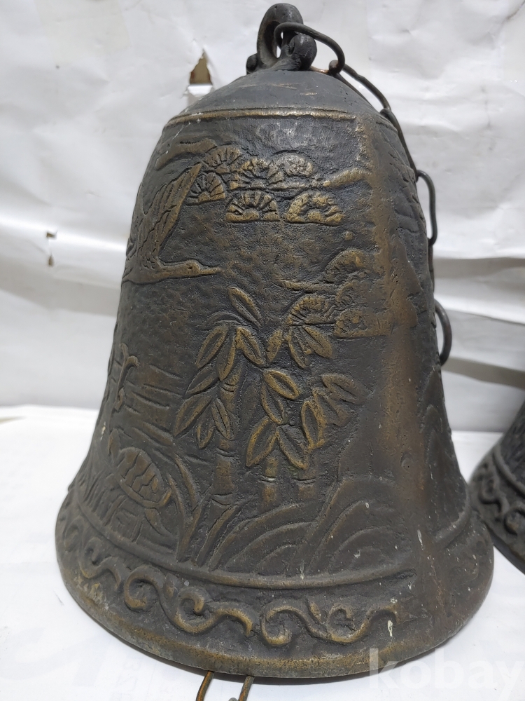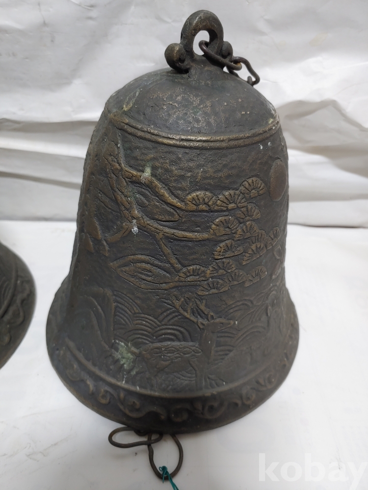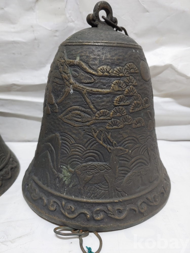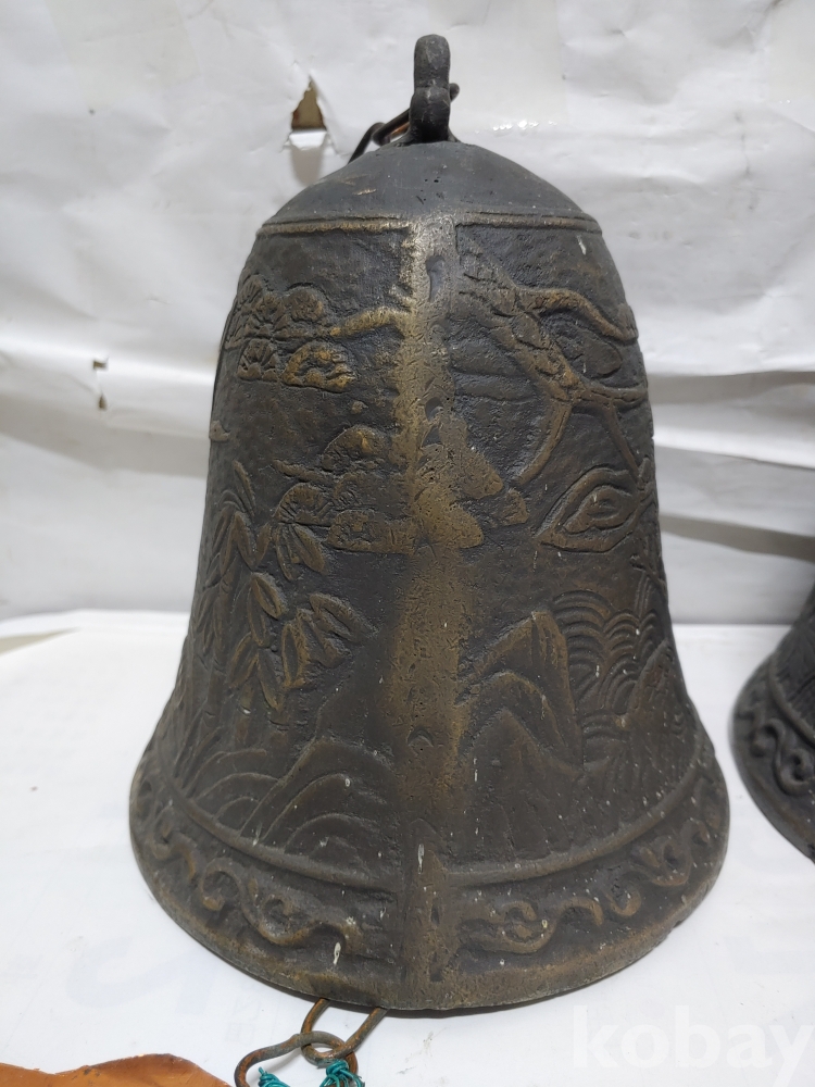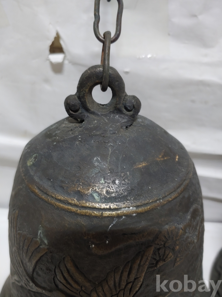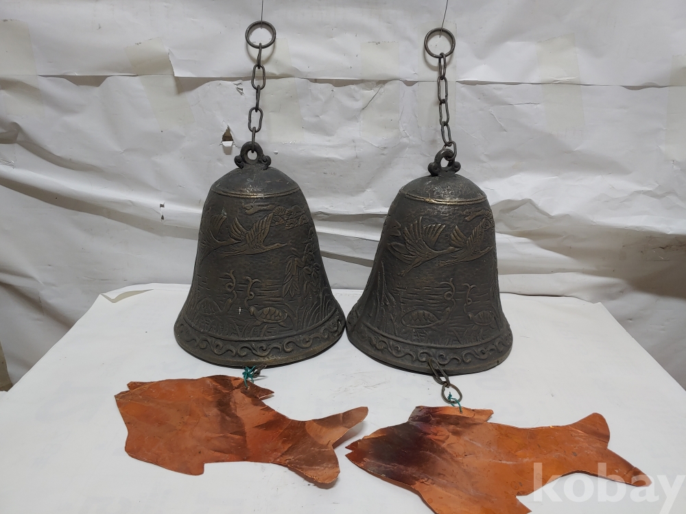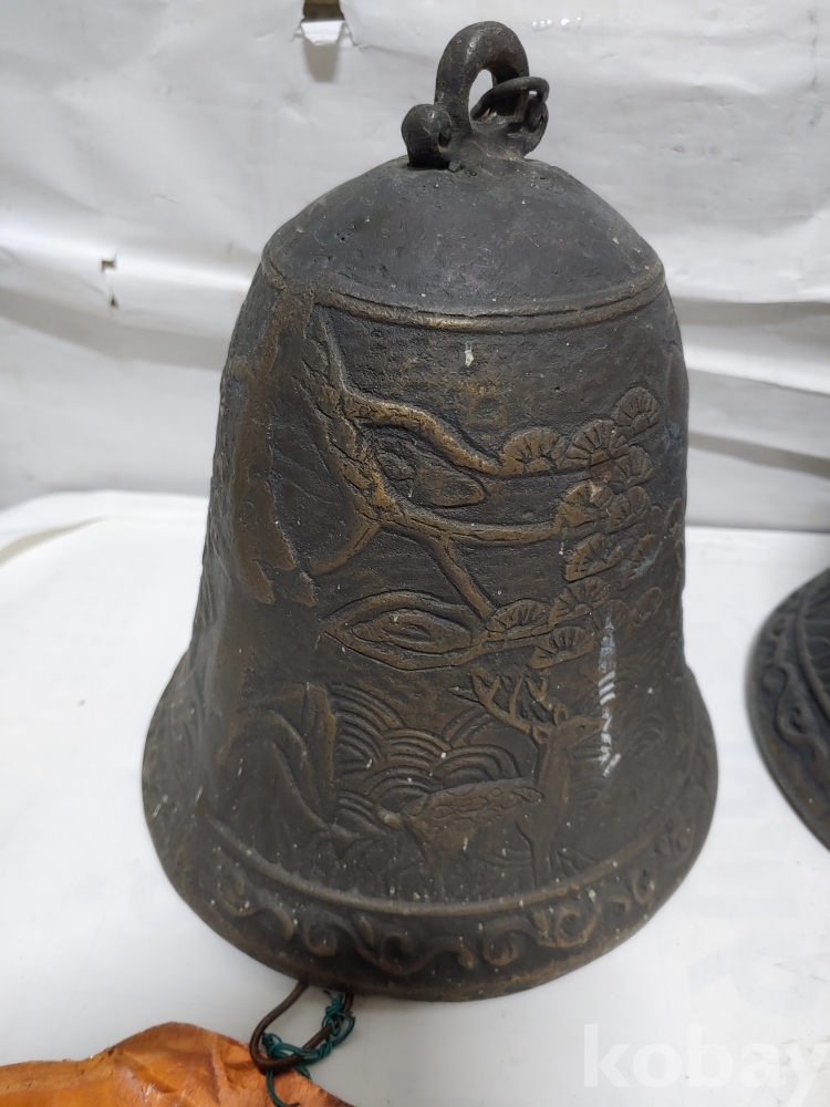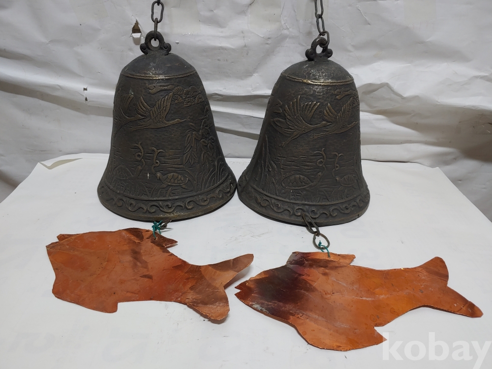 ""송학 사슴 거북이 등등 십장생 문양에 두툼한 초대형 크기에 놋쇠 핑경 한세트 (2개)"" 1번