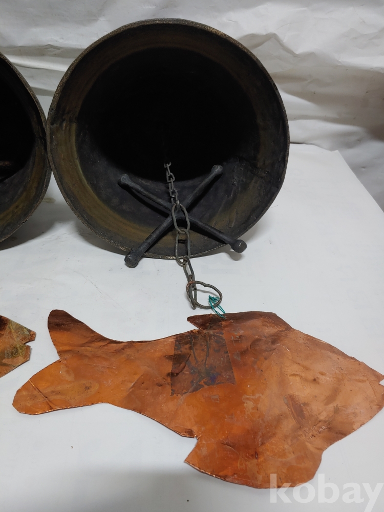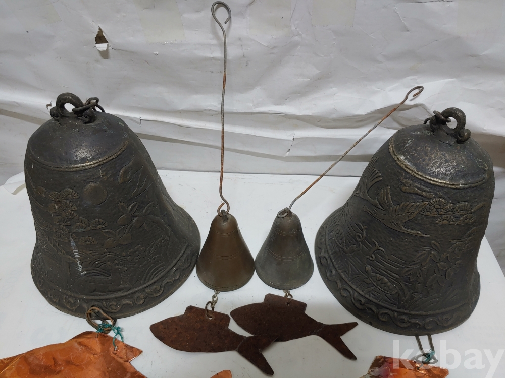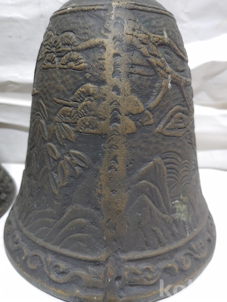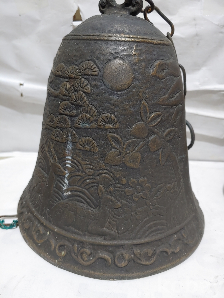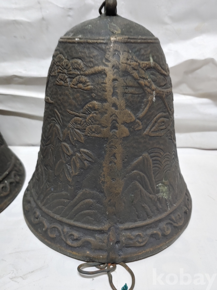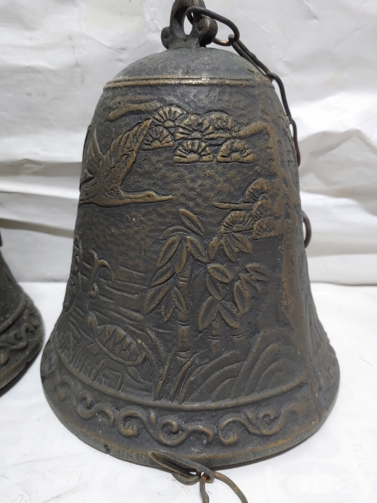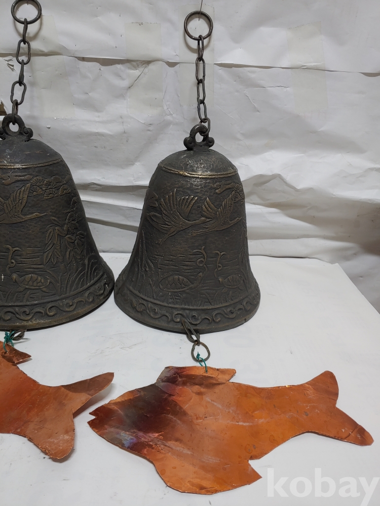 ""송학 사슴 거북이 등등 십장생 문양에 두툼한 초대형 크기에 놋쇠 핑경 한세트 (2개)"" 1번