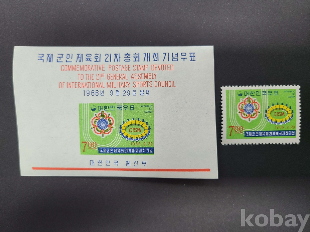 1966년 국제군인체육회 21차총회 우표+s/s