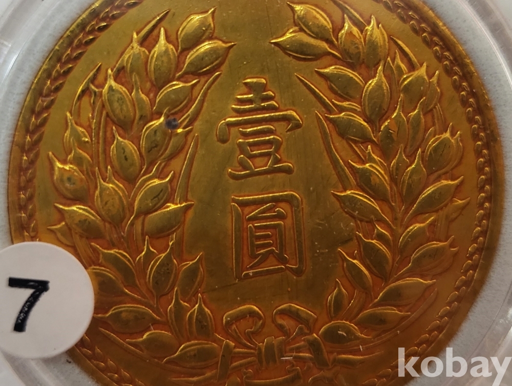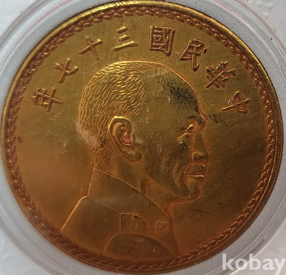 일책 7호 //// 중화민국 37년 발행된 액면가 일원 금색 주화입니다.