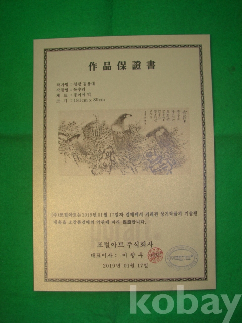 청광 김용대(淸光 金容大)의 독수리 대형 그림(89X181)입니다.