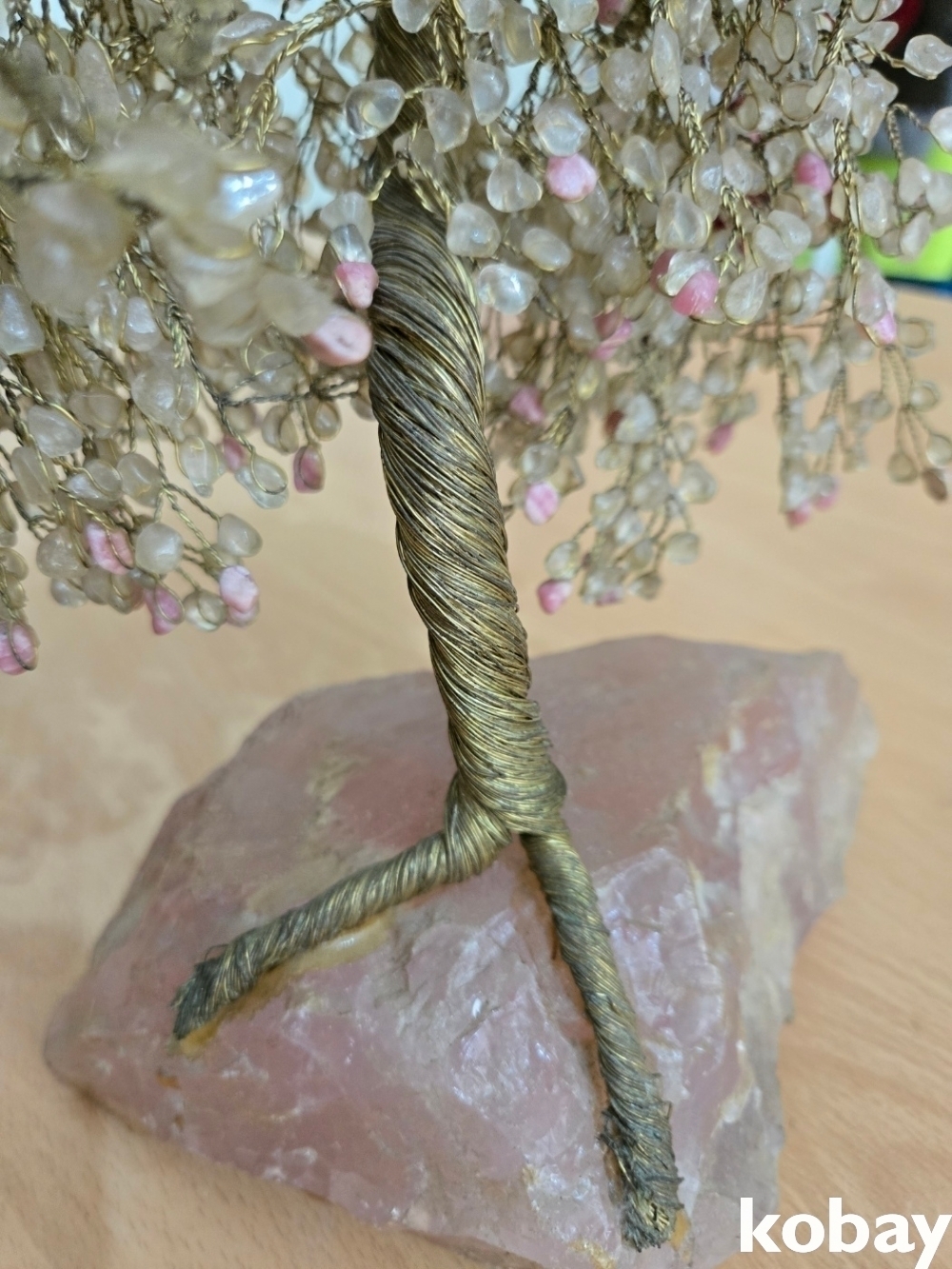 돌 조각이 주렁주렁 달린 구리 선 나무 입니다.