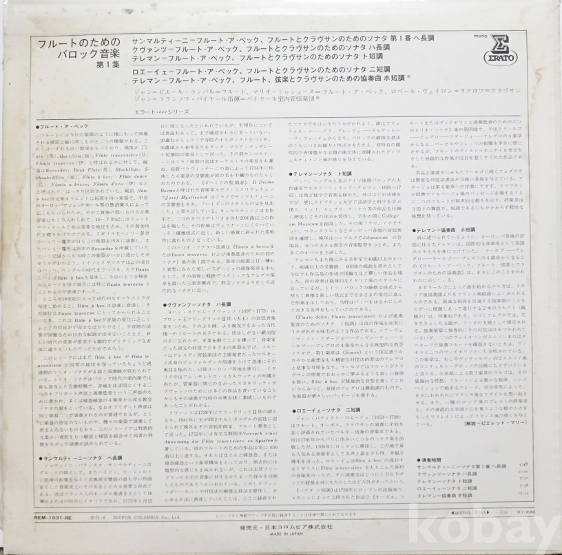 Sammartini, Quantz, Telemann, Loeillet - Jean-Pierre Rampal, Robert Veyron-Lacroix, Jean-François Paillard – Sonates Et Concerto Pour Flûte À Bec