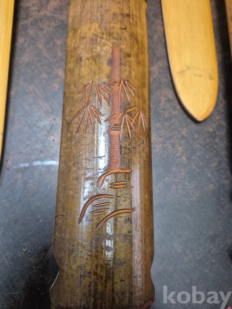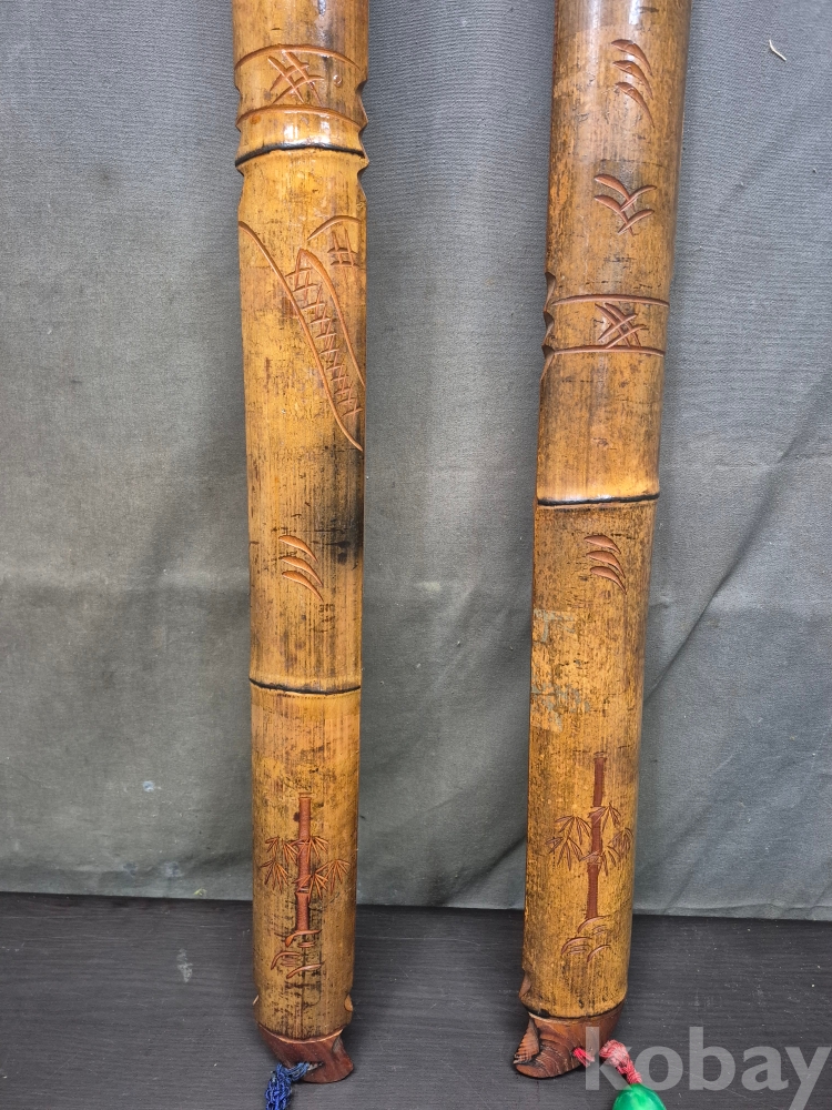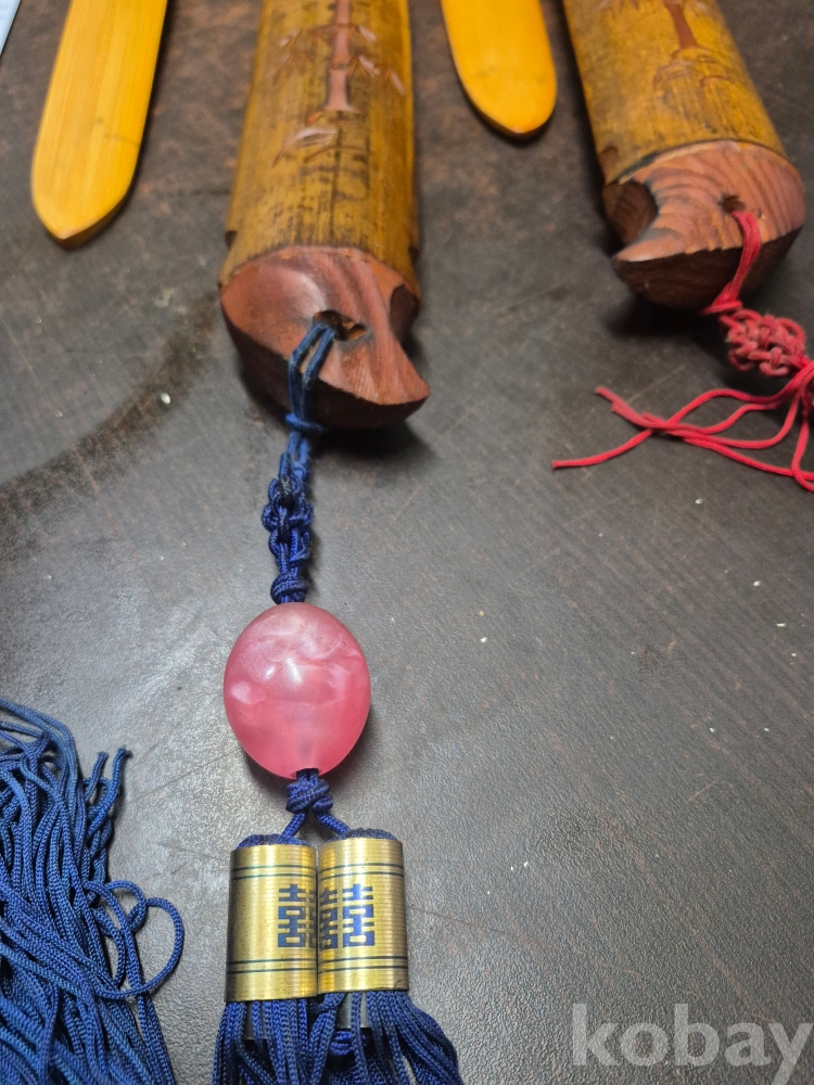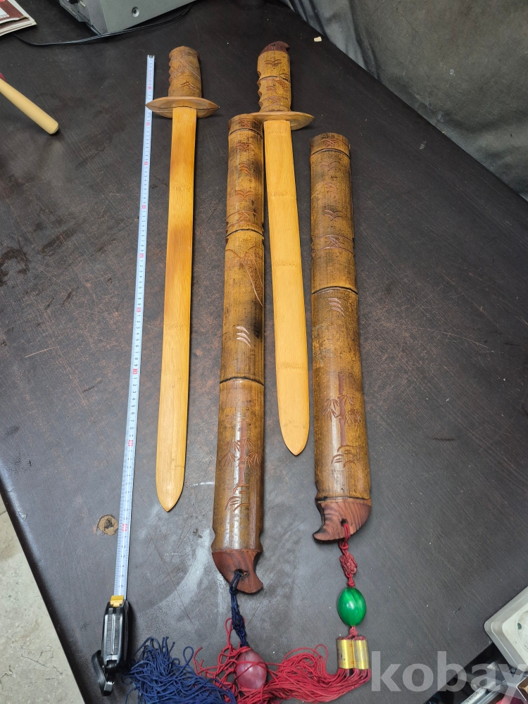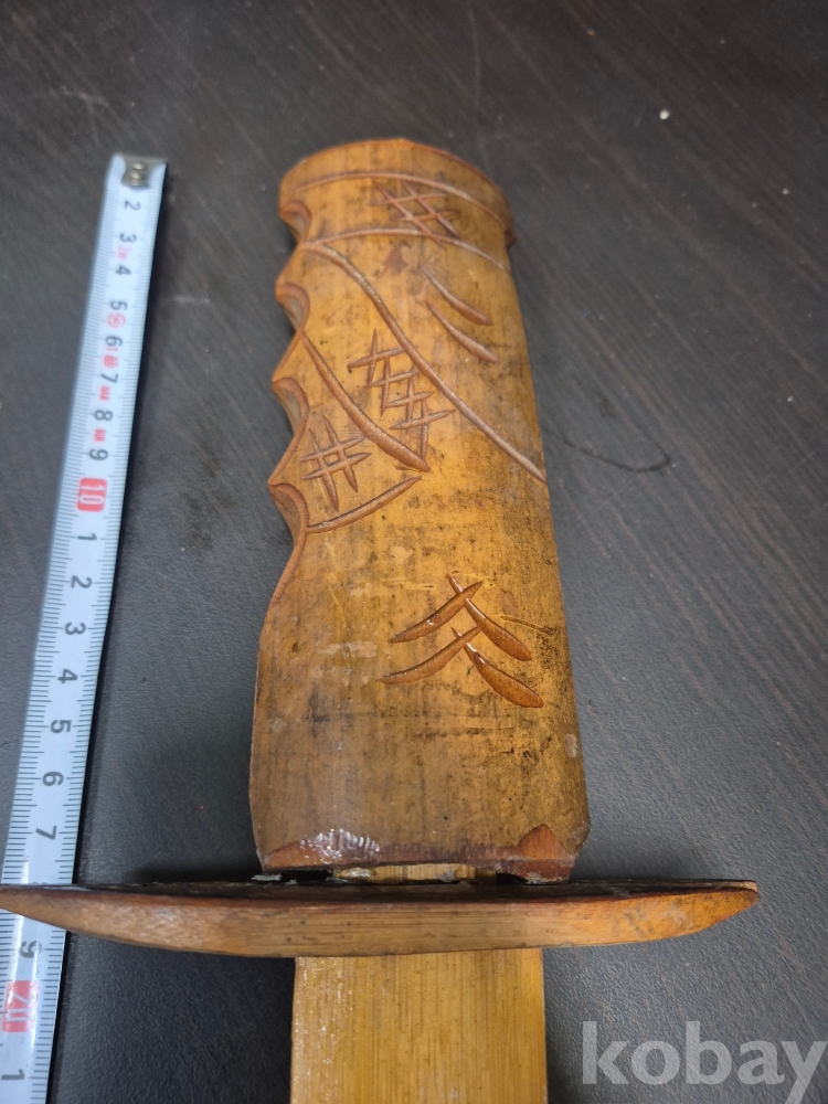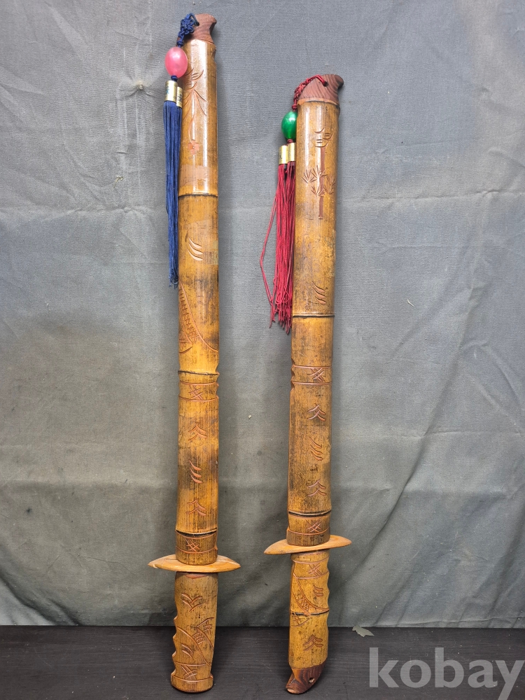 1970년대 대나무를 핸드매이드로 깍아 만든 목검 칼과 칼집 2점 일괄 모두 손으로 깍아 만들엇습니다 장식순에 복자가 새겨져 있어요 장식용으로 사용햇던것으로 추정합니다