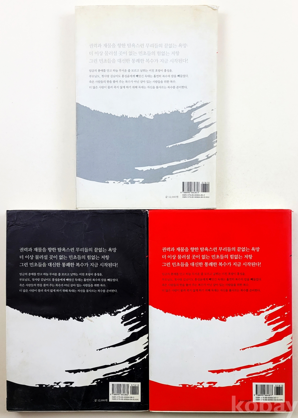 상 태 | 훼손 및 오염 정도(상태를 강,중,약,양호로 표시함) 사진 참고 부탁드립니다. / 표지 : (1,3)약 (2)중 / 책등 : (1,3)약 (2)약~중 / 내지 : (1)약 (2)중 - 젖은 흔적, 뒤틀림 (3)양호 / 전반적으로 약간의 뒤틀림 있음 / 날개커버 되있음 |