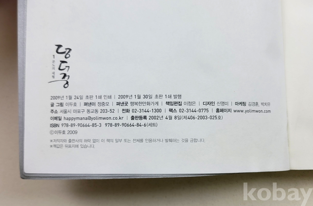 물 품 명 | 이두호 / 덩더꿍 (1~3)완결 총3권 / 2009년 초판 / 행복한 만화가게 |