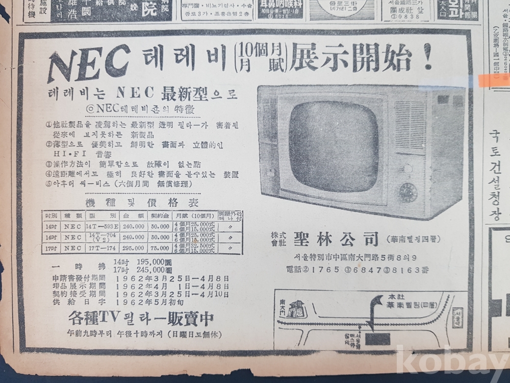 **** 1962.04.01(조선일보)/NEC 텔레비전 최신형 광고포함/약 4면