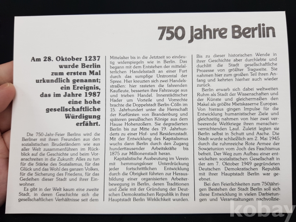 - 1987년 베를린 750주년 기념주화 및 기념우표 초일 커버