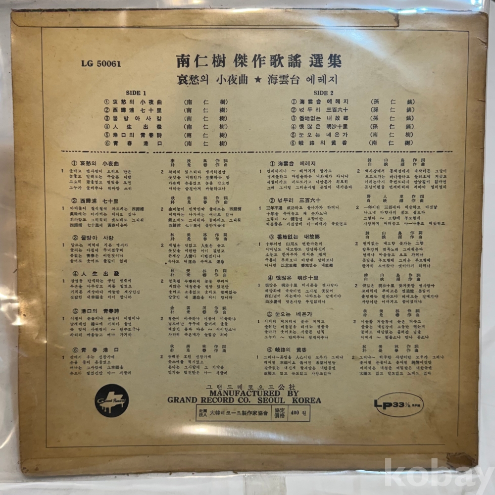 EX : 약간의 마모, 모서리 찢김 존재 음반상태
