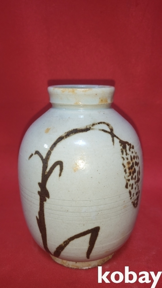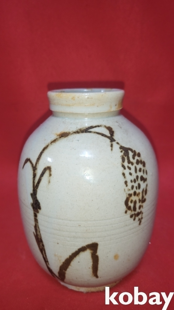 유명 도예가 천토 백도곡 作 철화 식물문양 병입니다,