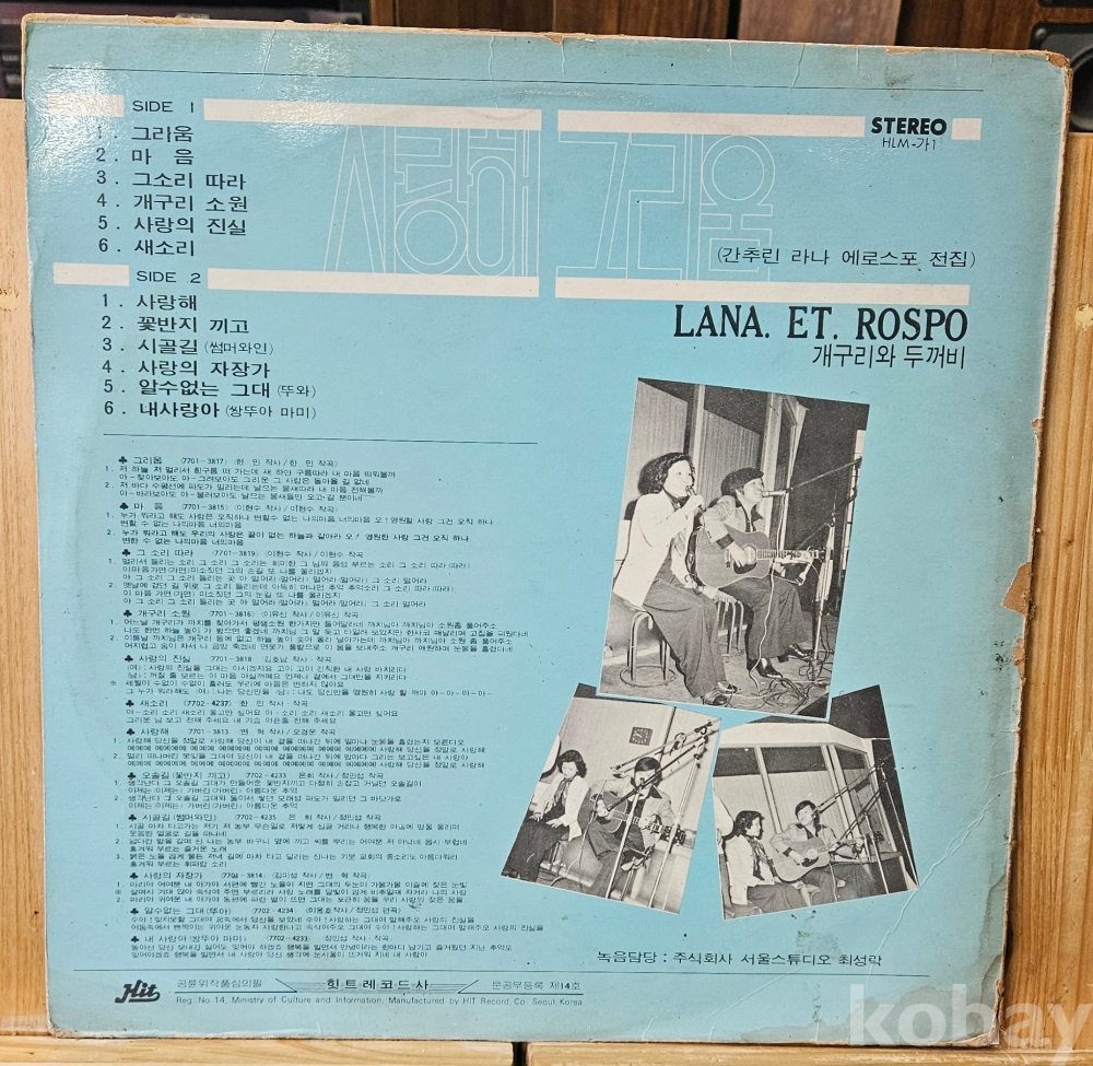 1977년도에 발매된 포크 가수 라나에로스포의 [ 그리움 / 마음 ] 이두곡이 타이틀인 컬렉터 음반 입니다.