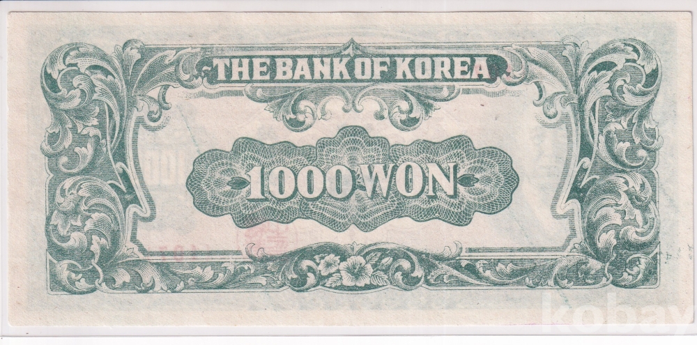 - 한국은행 1950년 최초의 1,000원권인 이승만 한복 천원 일본인쇄 지폐 입니다.