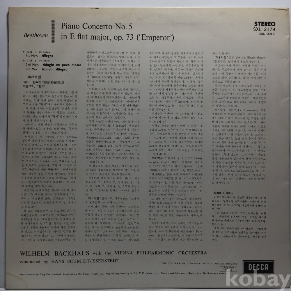 LP 350-41 베토벤 피아노협주곡 제5번 작품 73 황제 자켓 EX+ 알판 EX 78 년 국내반