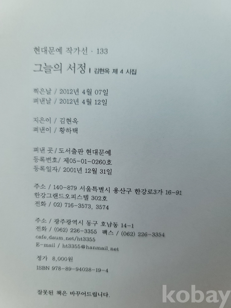 고서출판 '현대문예'에서 '현대문예 작가선[331]'으로 발행.