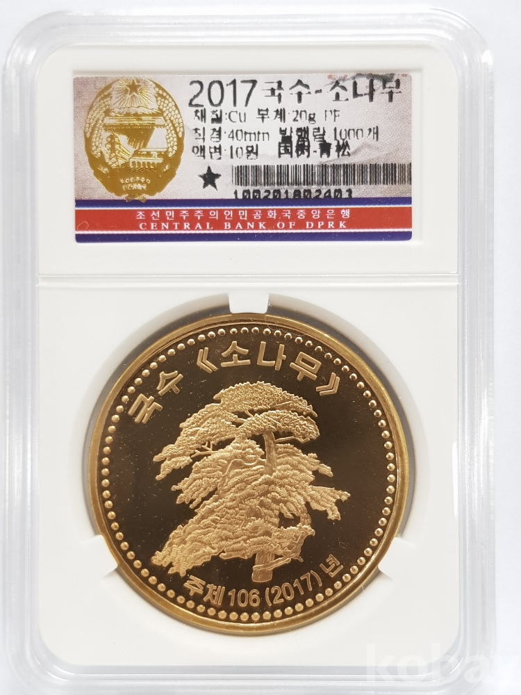 - 2017년(주체106) 국수 - 소나무 10원 프루프 인증 주화