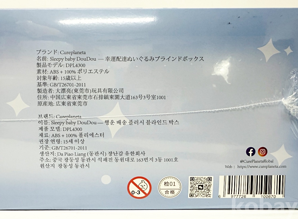 상품명 | (미개봉) 베이비 쓰리 '졸린눈 두두 (Sleepy Baby DouDou)' 시리즈 100% 블라인드 박스 | ||