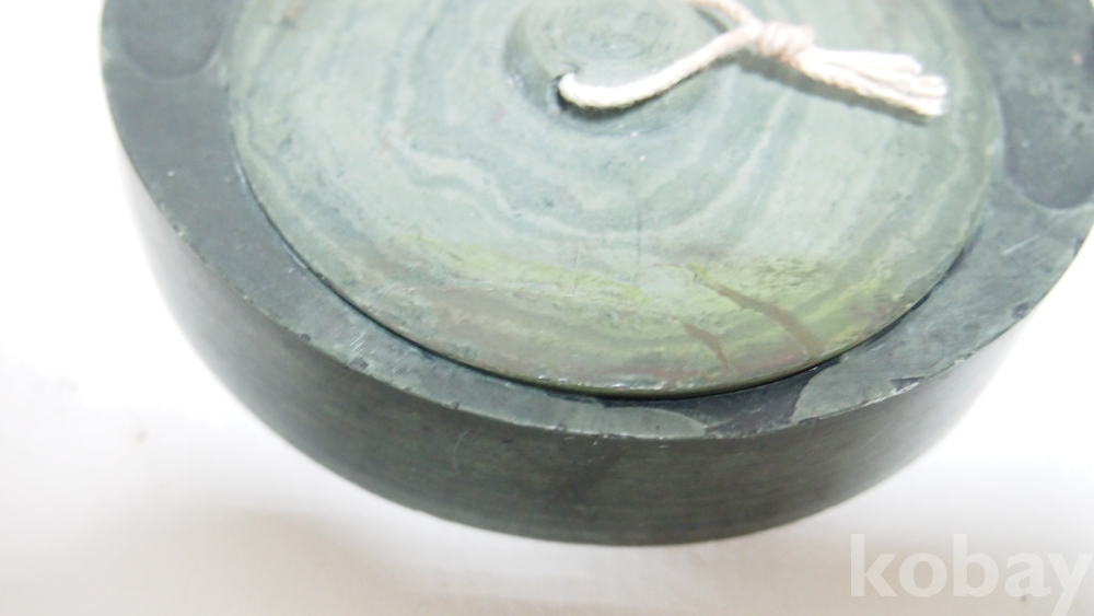 상품 설명 | 황해도 해주의 쑥색 애석(㘷石) 경성 남대문 원형 벼루입니다. 고대부터 해주의 먹과 벼루는 중국과 일본으로 무역을 했을 정도로 귀한 대접과 인기를 누렸습니다. 조선 중기부터 말까지 최고의 서화가들이 해주먹과 벼루를 사용했다고 합니다. 조선 말부터는 보령 백운상석, 남포석은 추사선생도 사용했다고 합니다. 특히 해주산은 부드럽고 은은한 먹 색상은 본인도 고서화 감정할 때 참고로 합니다. | ||