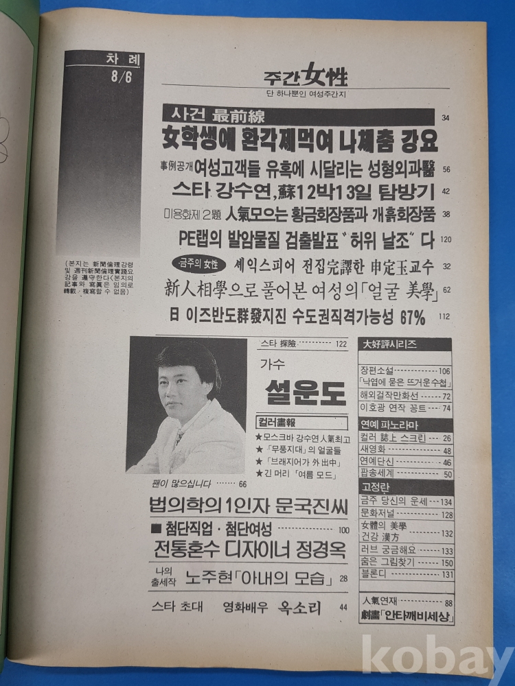 주간여성(모델 강수연)*1989년8월6일