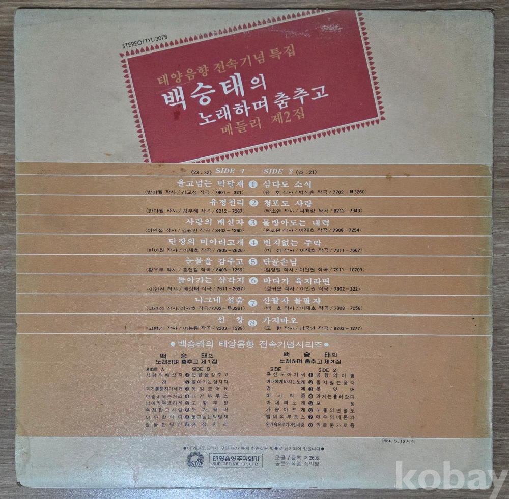| 자켓상태 | VG : 주름, 접힘, 모서리 찢김 다수 | 음반상태 | G : 눈에 띄는 스크래치, 튐 또는 노이즈 발생 | 발매정보 | 알수없음 | 가사지여부 | 무 |