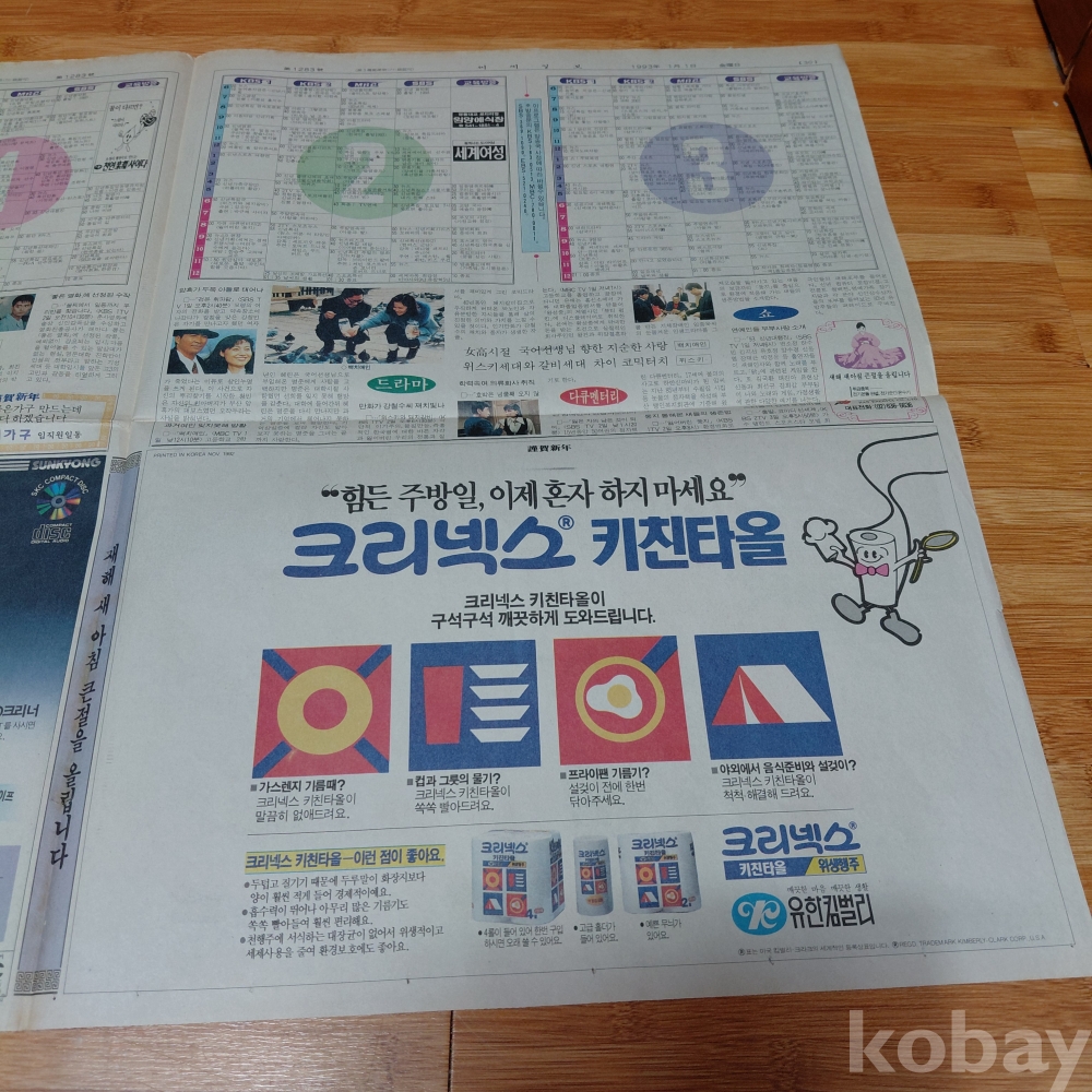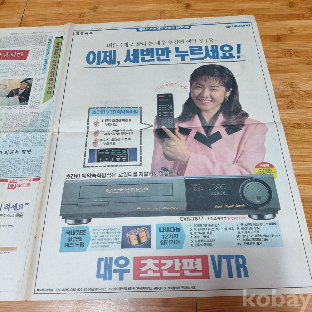 대우 초간편 VTRㆍSKC오디오테이프 ㆍ크리넥스 광고 세계일보 93년1월1일 올려드립니다