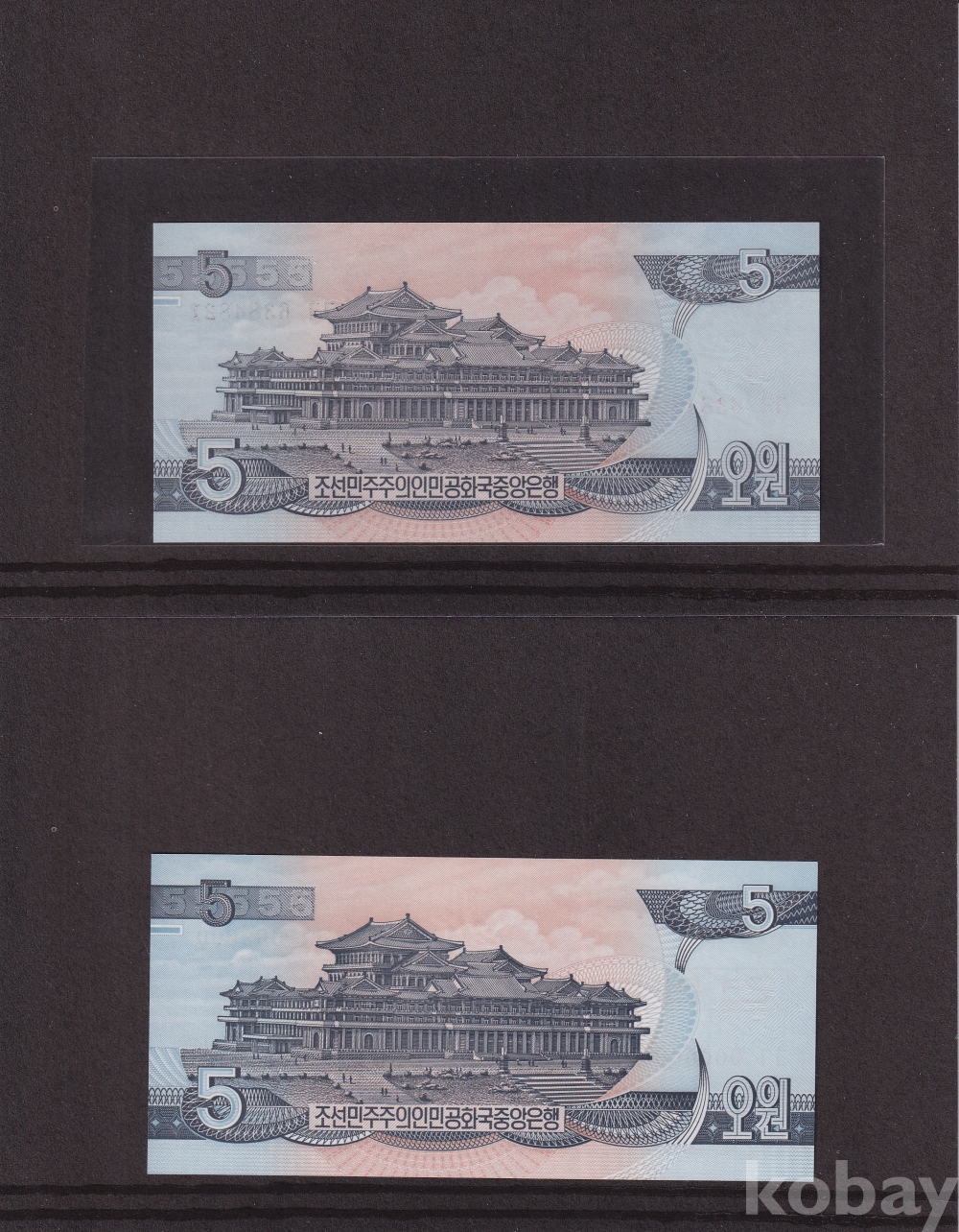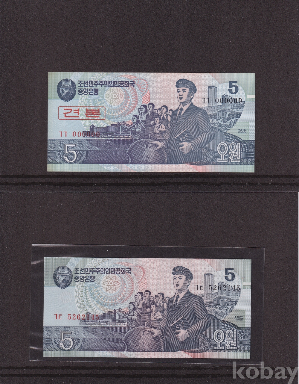 - 윗동네 1998년 오원 000 견본 / 오원 통용권 미사용 지폐 - 2장 일괄
