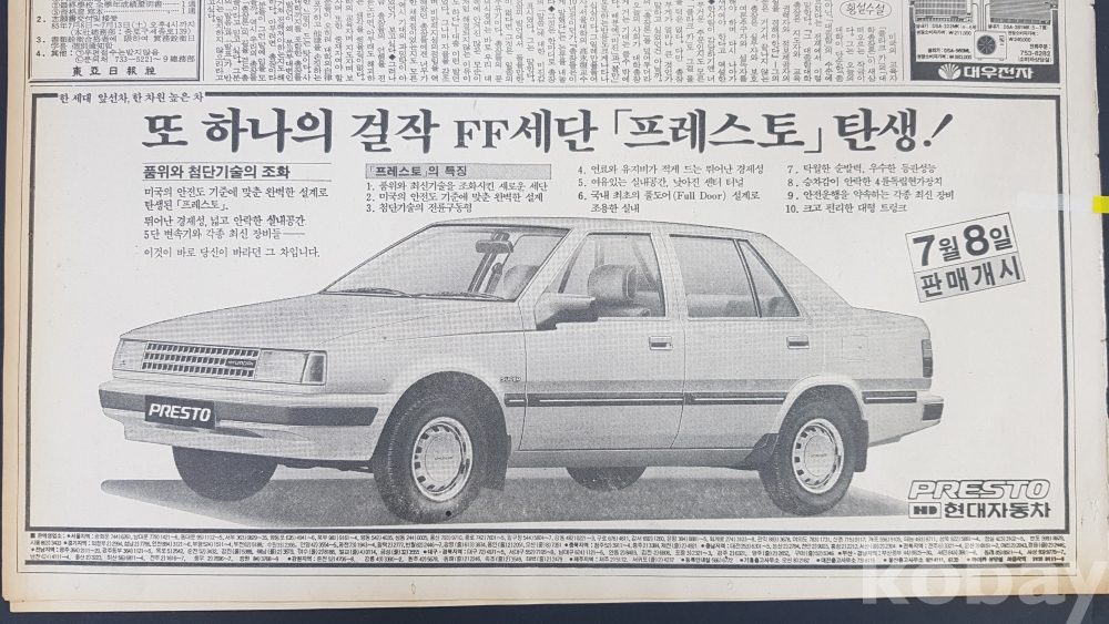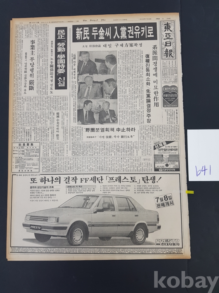 **** 1985.07.08(동아일보)/현대자동자 프레스토 광고포함/약 12면