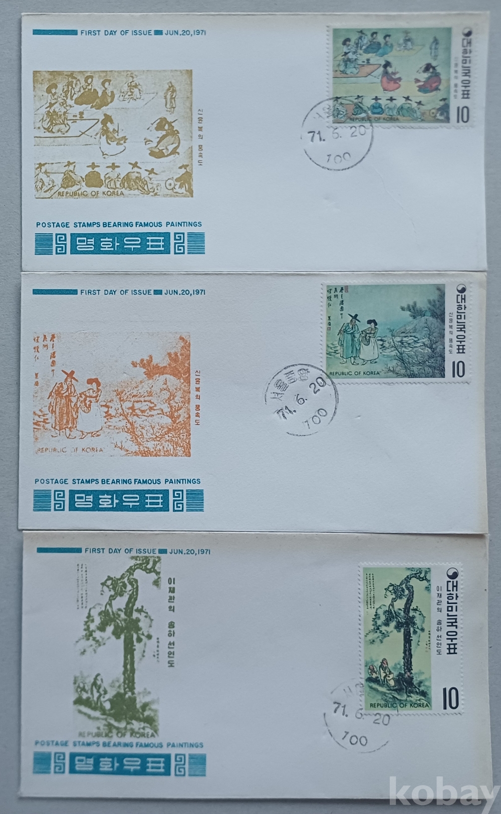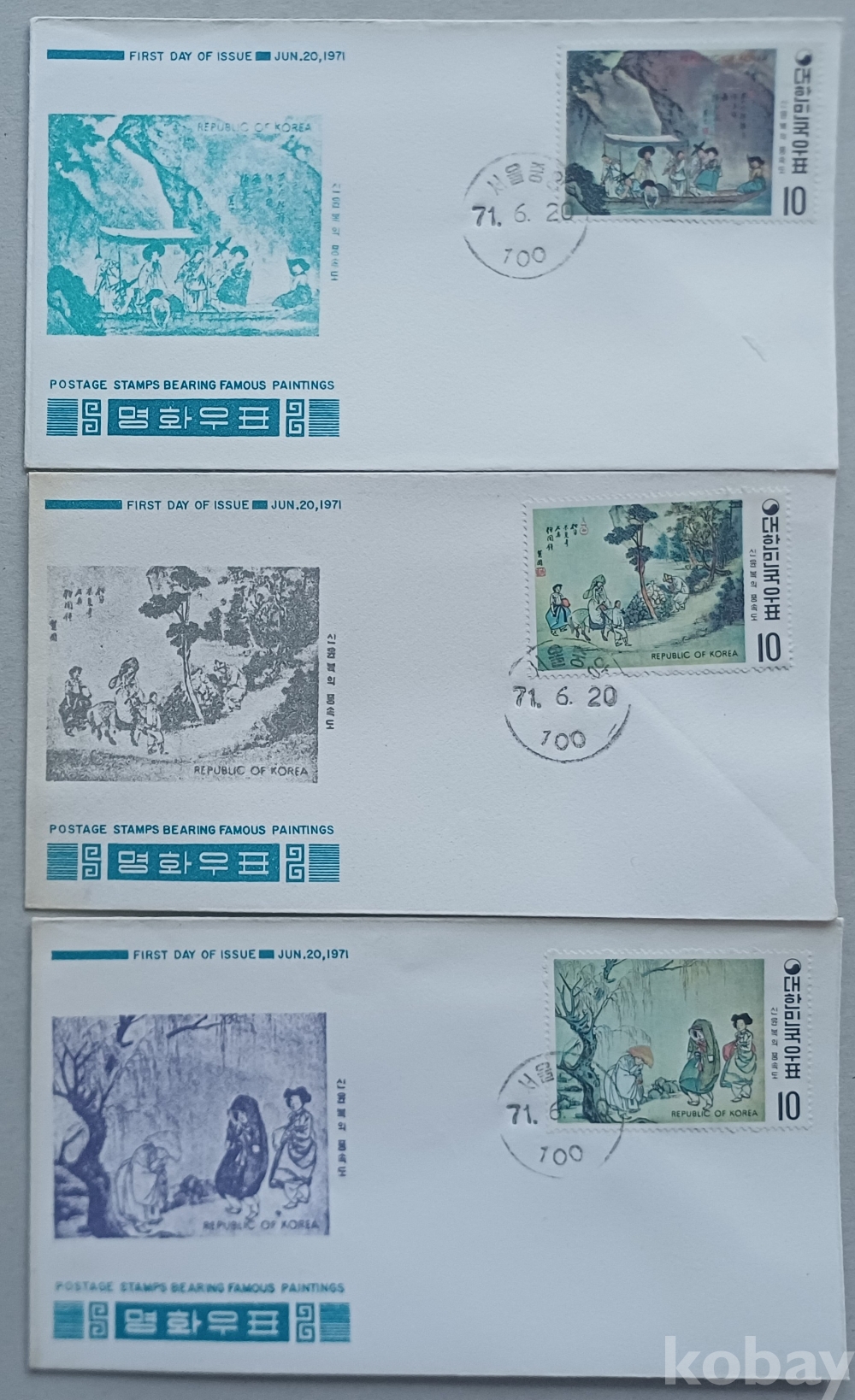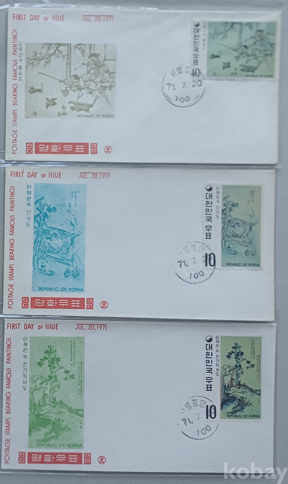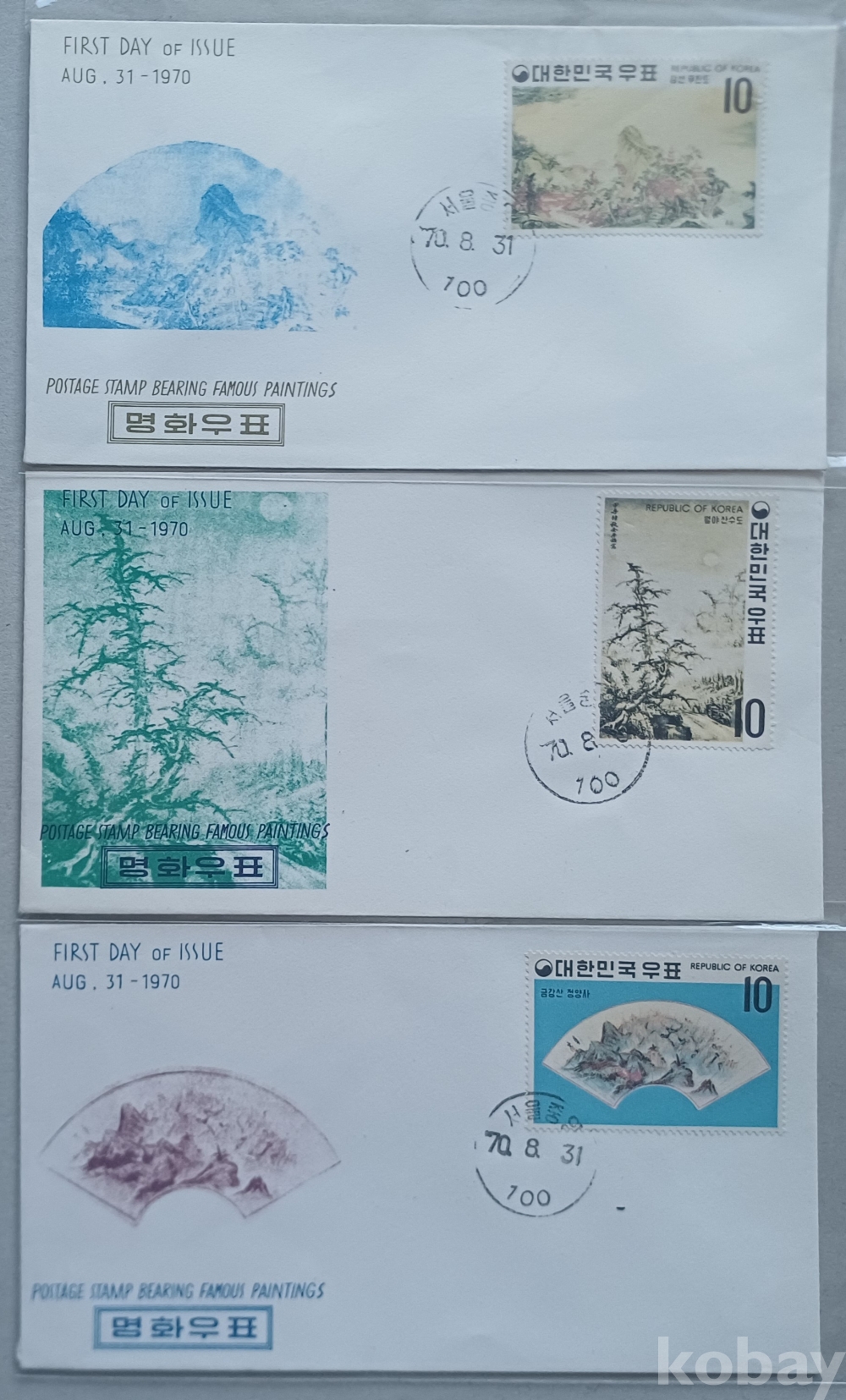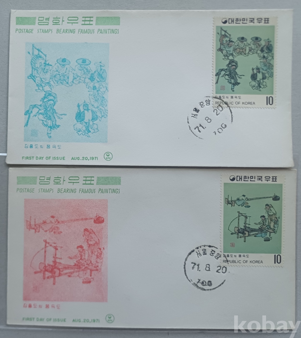 1970~1971년 명화우표 시리즈 단편 초일봉투 23매 완세트