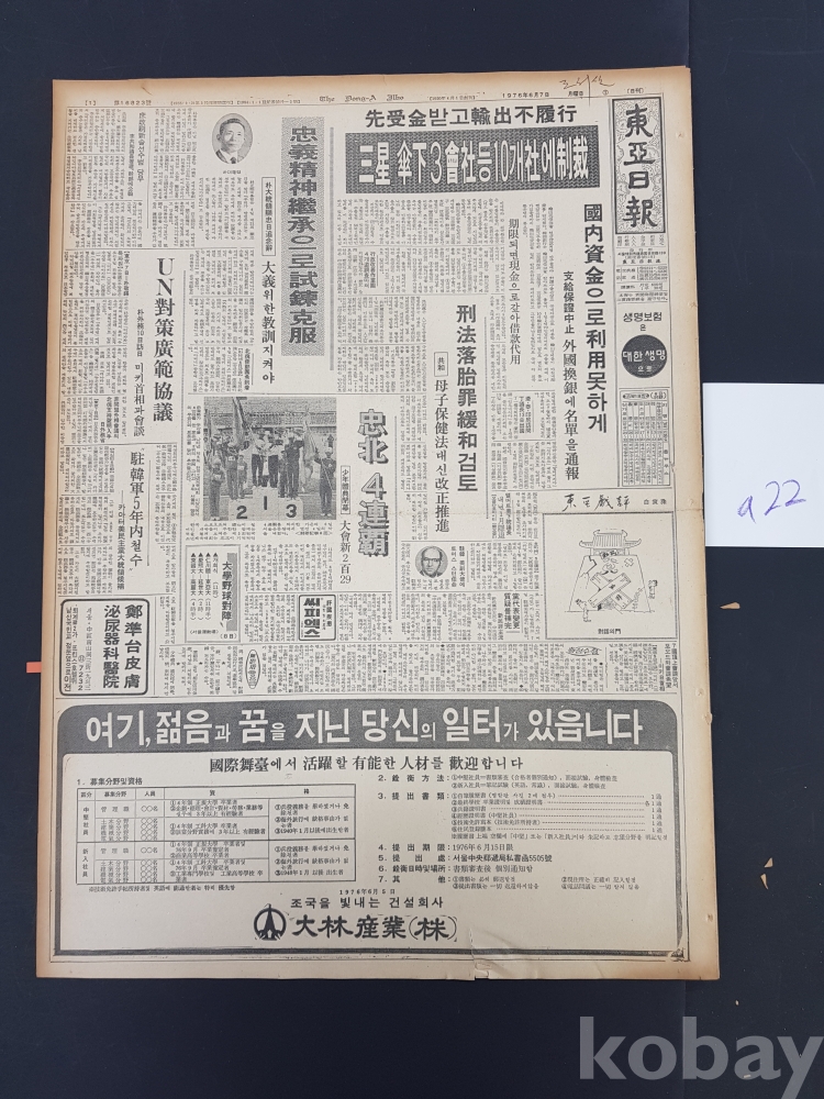**** 1976.06.07(동아일보)/대한제당 대한 선풍기 등 광고포함/약 8면