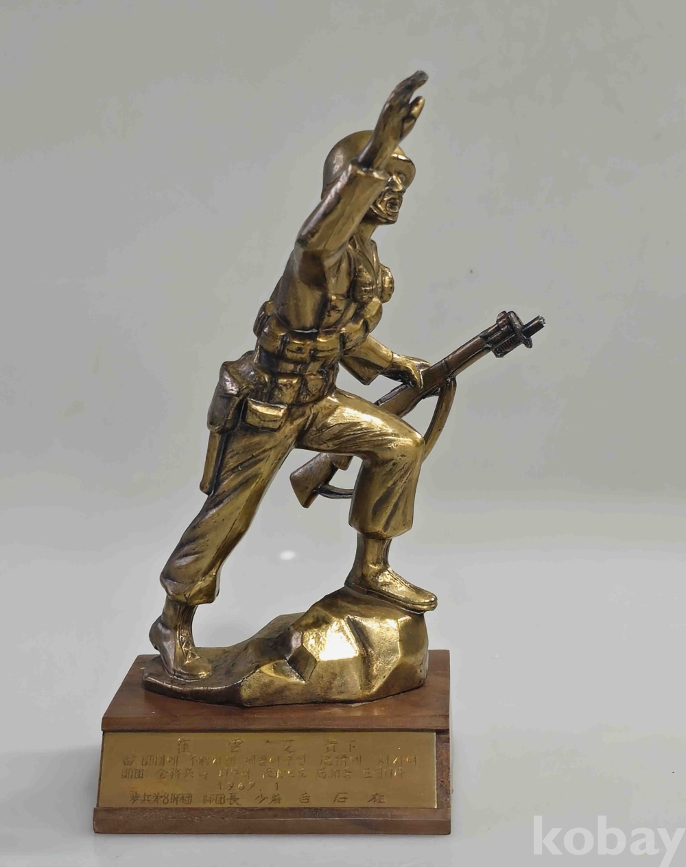 상품 설명 | 1969년 백석주(육사8기) 8사단장 감사동패(오뚜기부대)입니다. 상태양호하나 총구 앞 대검의 앞쪽이 유실되었습니다. 참고로 사진은 확대한 상태이며 설명 못한 부분은 사진으로 대체합니다. 흔한 기물이 아니기에 소장의 가치가 높습니다. | ||