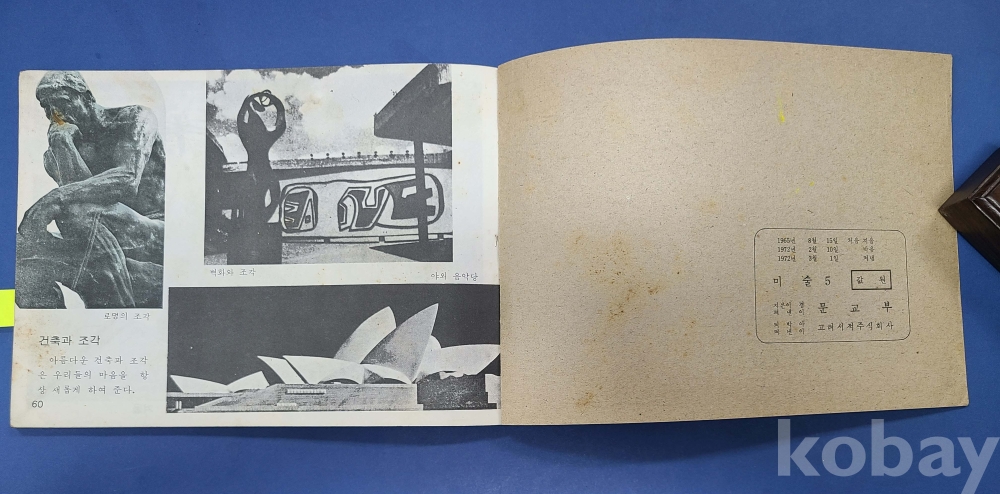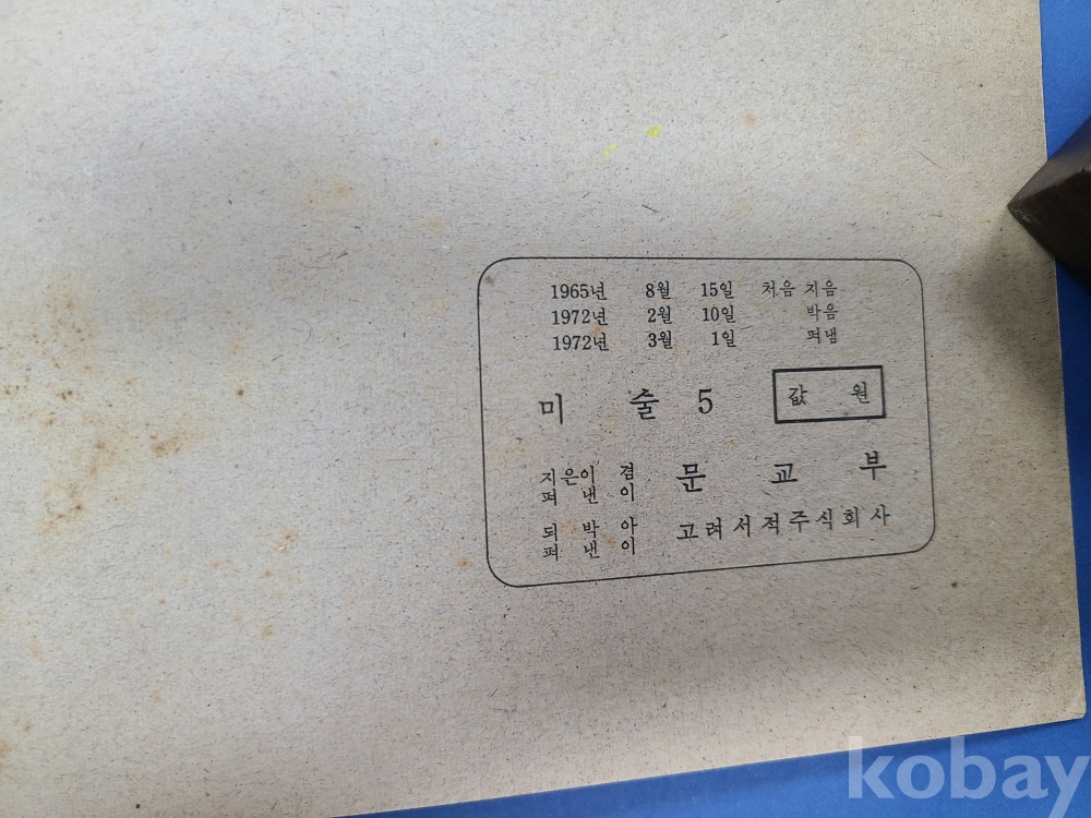 [YY18] [교과서] 미술5*1972년/문교부 발행,낙서, 물먹음,찢어진부분 있음