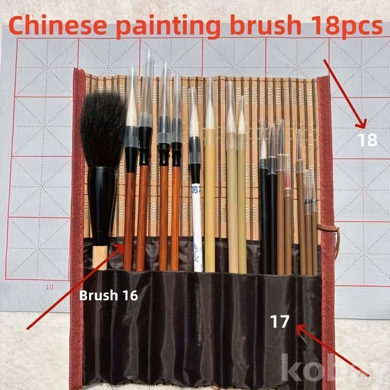 사진이미지와 같이 전통 서예 및 수채화 펜 세트, 대나무 가방 포함, 드로잉 도구, 아티스트용