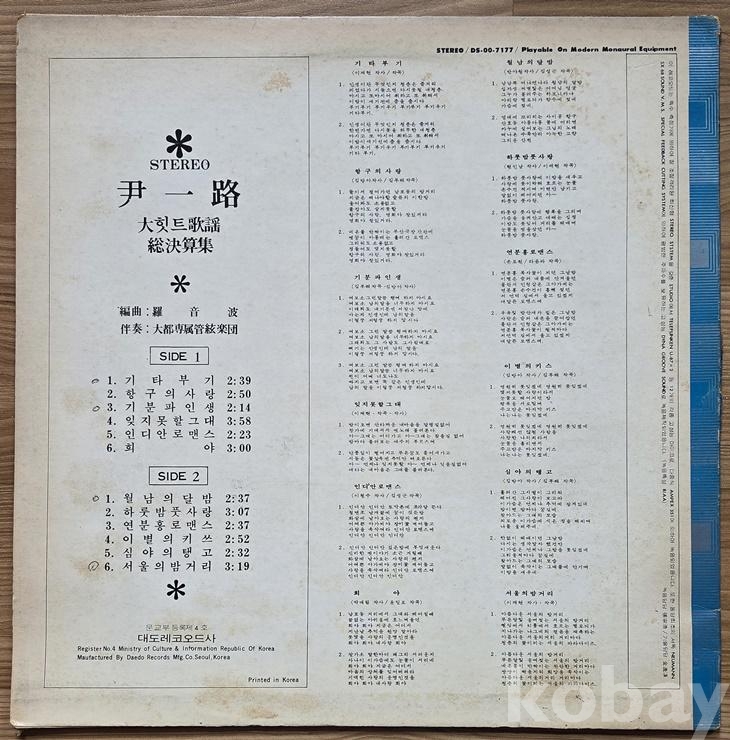 | 자켓상태 | EX : 약간의 마모, 모서리 찢김 존재 | 음반상태 | EX : 재생에 영향 없는 가벼운 기스 존재 | 발매정보 | 초반 | 가사지여부 | 유 |