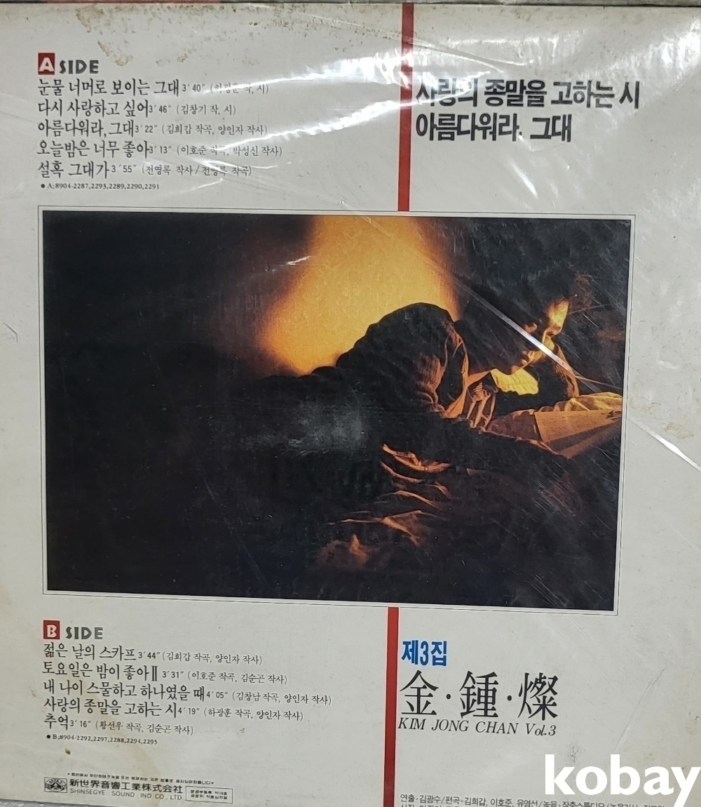 | 자켓상태 | EX : 약간의 마모, 모서리 찢김 존재 | 음반상태 | VG : 생활 기스 다수, 가벼운 노이즈 존재 | 발매정보 | 알수없음 | 가사지여부 | 유 |