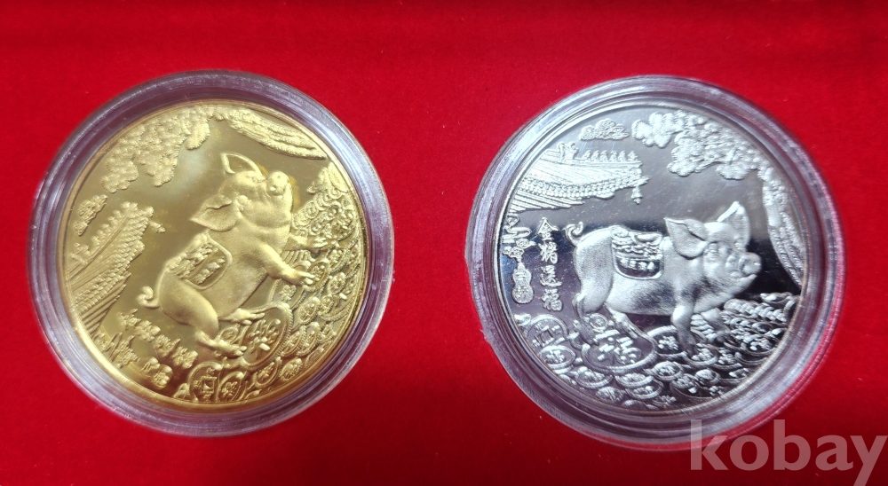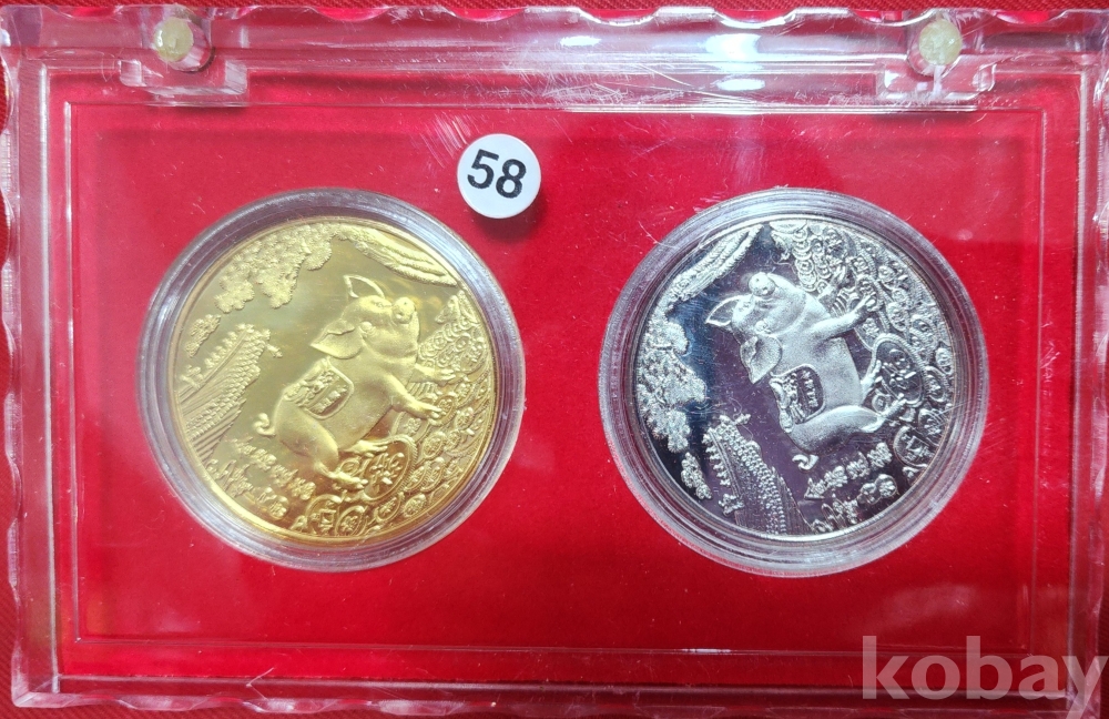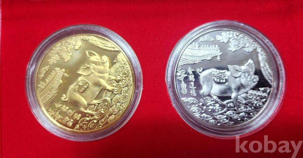 금색과 은색 으로 치장한 용도 미상의 두개가 들어 있읍니다,