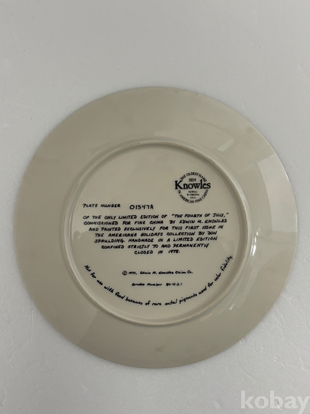 1978년 The Fourth of July"(7월 4일)라는 제목의 한정판 시리즈 접시입니다.