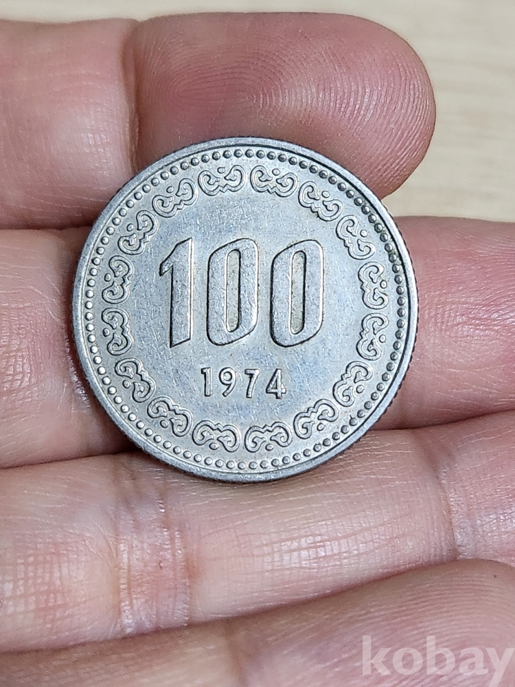 한국주화 특년도 1974년 100원 사용제 눈도안 다살아있음