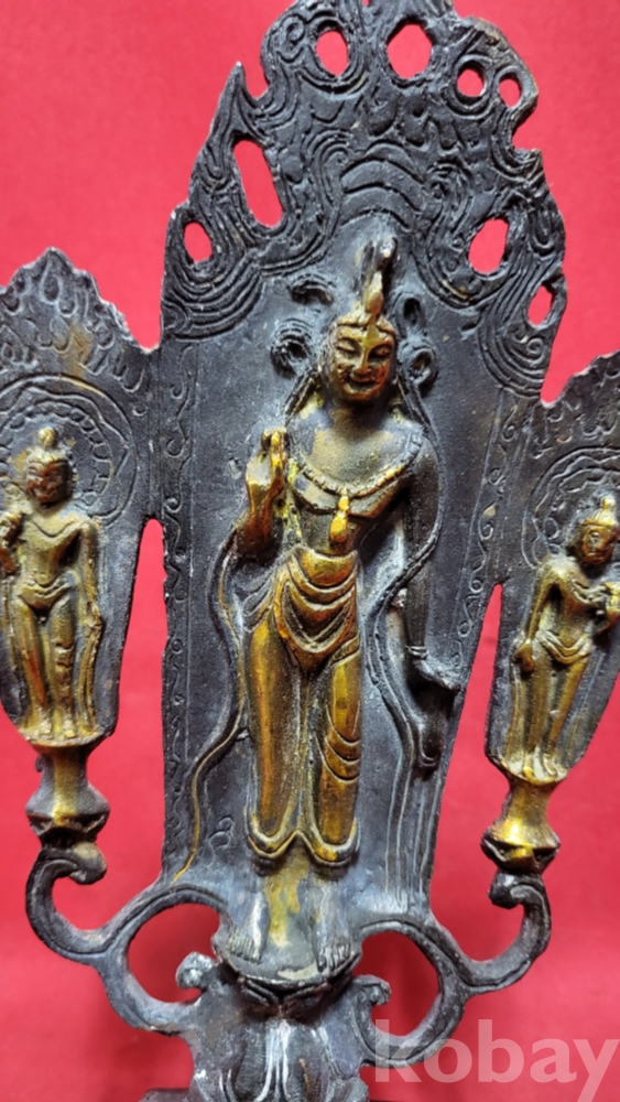 매우 높은 연대를 갖춘 금동 삼존불(三尊佛)입니다,