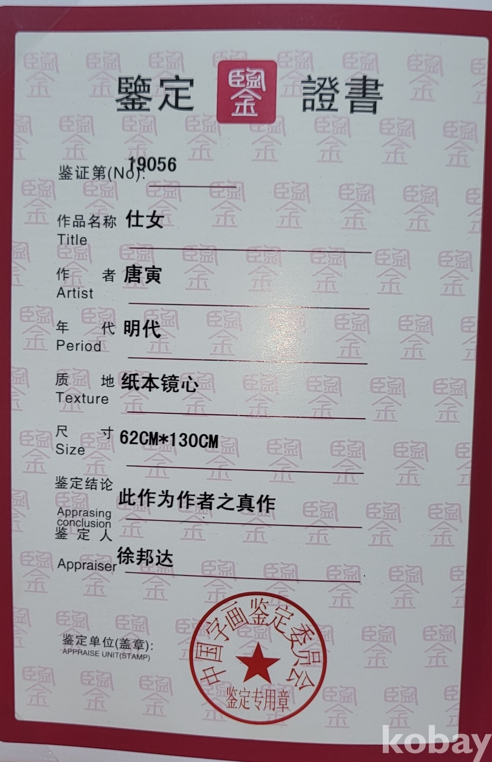監定證書(감정증서)가 함께하는 중국 화가인 당인 (唐寅) 作 대작 인물화입니다,