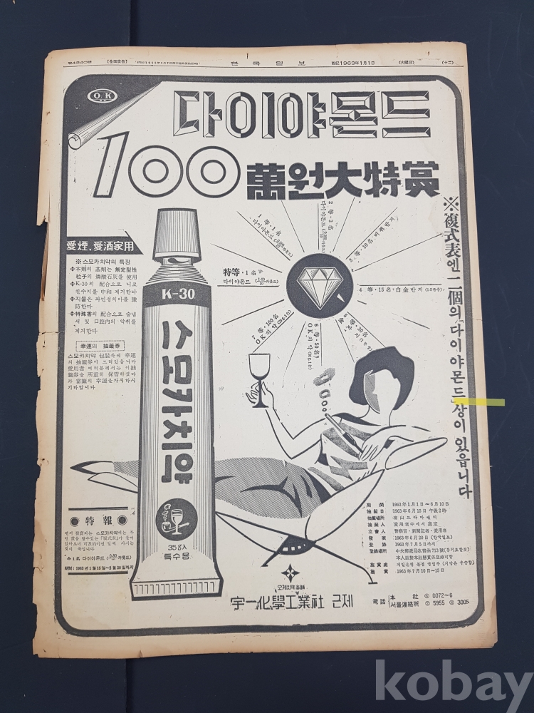 **** 1963.01.01(한국일보)/우일화학공업사 스모카치약 광고포함/약 4면