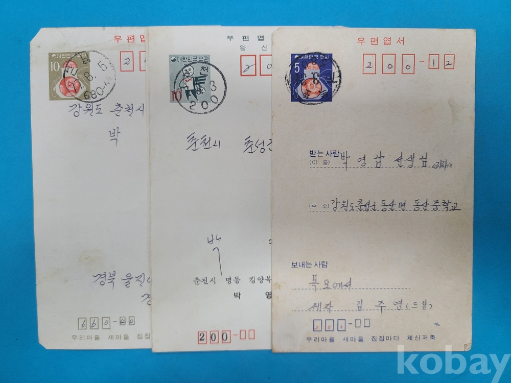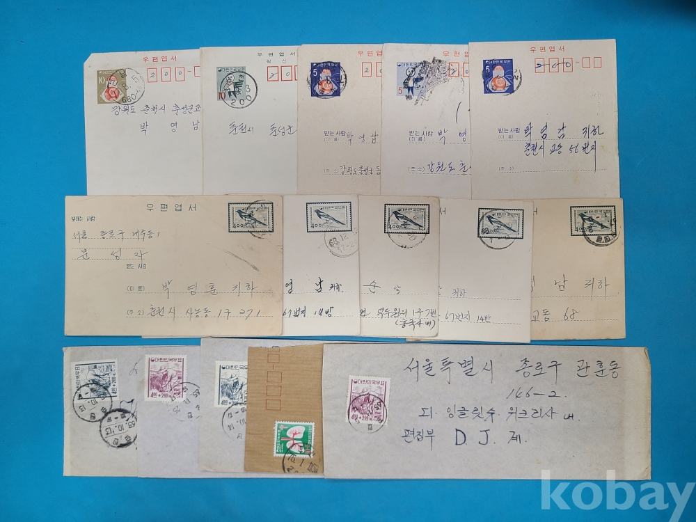 [춘천자료] 춘천 실체봉투,우편엽서 15매 일괄
