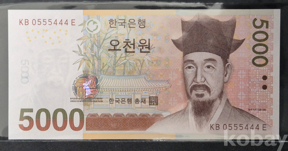 - 한국은행 2006년 5차 오천원 0555444 이쁜번호 미사용 지폐