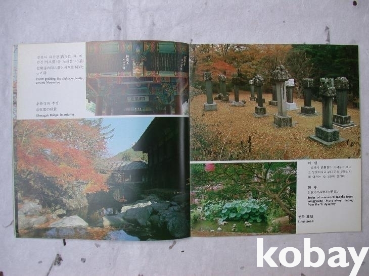 송광사의 연혁부터 경내의 여러 풍경들을 수록하며 간간이 설명도 붙여 놓았다. 일본어와 영어도 부기하여 외국인도 볼 수 있게 만든 도록이다.