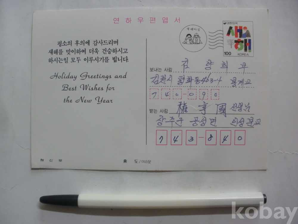 홍도 (이승문 ) - 연하우편엽서 (상주군 공성면 인성분교 선생님 에게 학무모가 보낸)