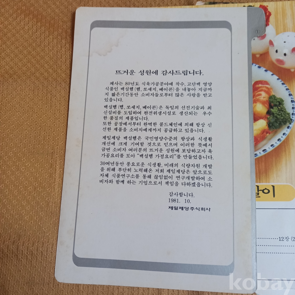 81년 제일제당(주) 백설햄 광고(가정요리)