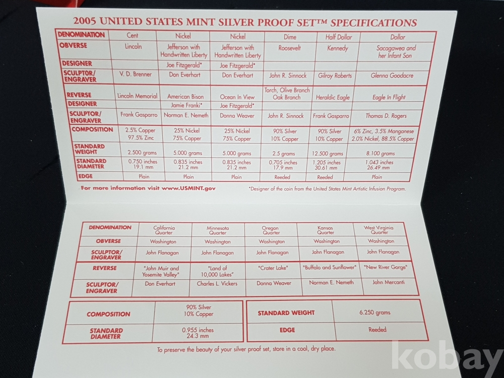 - 은화포함/ 2005년 미국 은화 프루프 11종 주화 세트