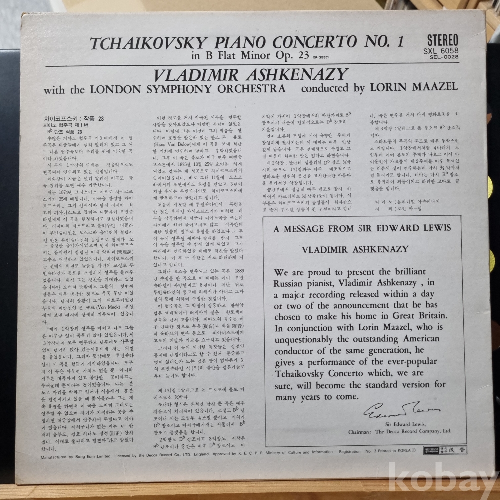 차이코프스키 작품 23 피아노협주곡 제1번 DECCA 성음 1972년