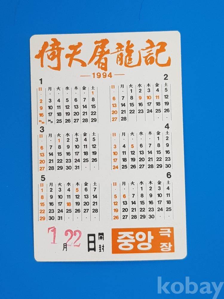 **** 영화카드*의천도룡기:마교교주/이연걸, 구숙정 주연/1994년 중앙극장