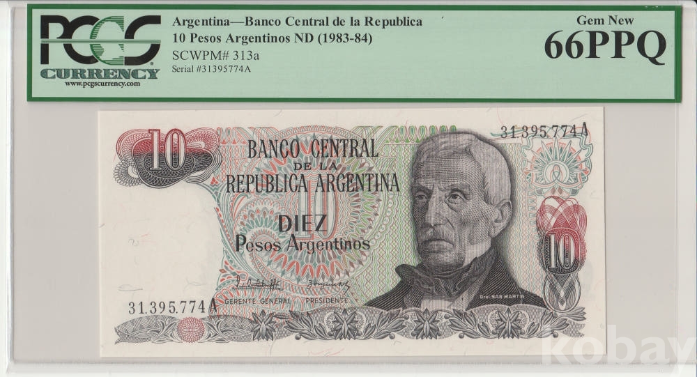 아르헨티나 지폐 1983년 10페소 PCGS66등급